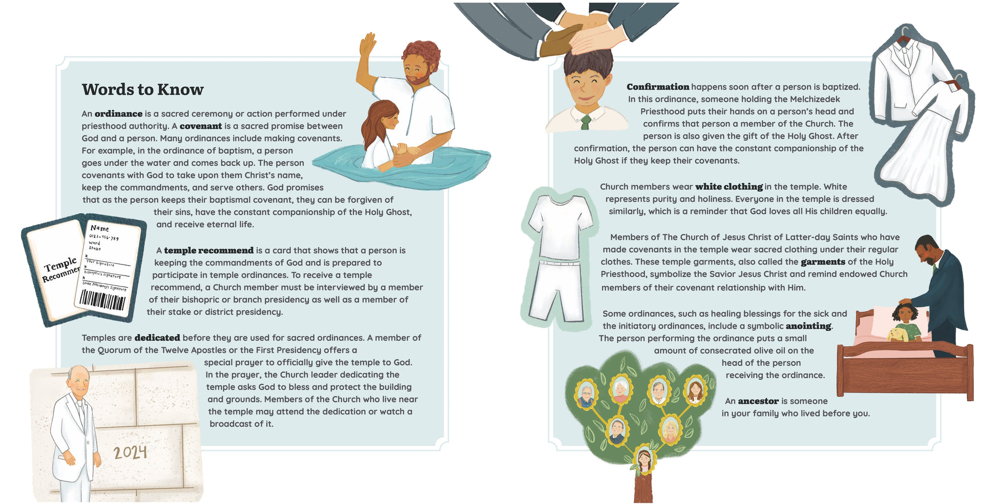 An illustrated glossary helps young readers understand terms such as anoint, temple dedication, ancestor, and more.
